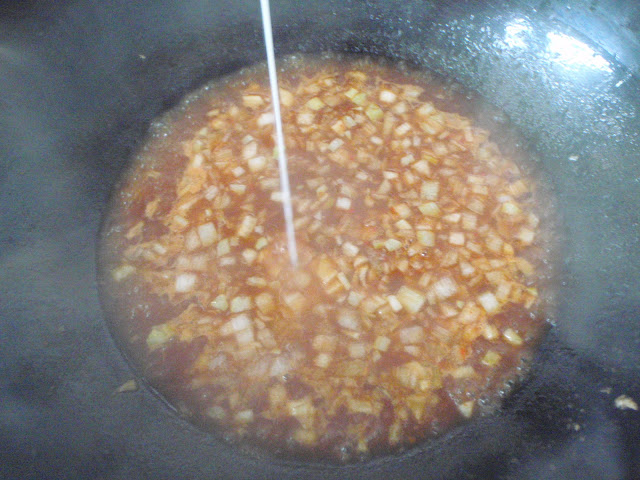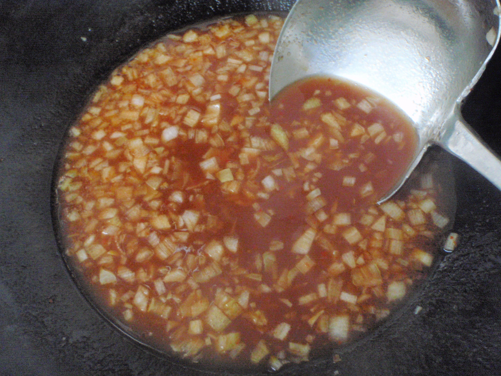 次に予め合わせておいた「混合調味料(水、ケチャップ、砂糖、黒砂糖、塩、ガラスープの素