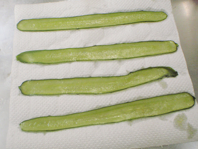 鍋にお湯を沸かして、砂糖、オリーブオイルをぶち込んで甘さ加減を確認したらスライスした胡瓜を入れて煮詰めていく。