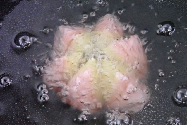 油温120℃に上げてその温度をキープしながら約10分間かけてゆっくりと層を放射状に開かせます。